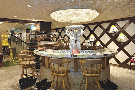 もとは噴水だったというタイル張りのカウンター