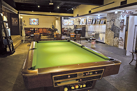 店内の特等席に鎮座するビリヤード台