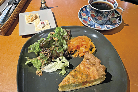 軽食は、たまごサラダと厚焼きたまごのボリューム満点『ダブルたまごサンド』や、外はサクサク、中はしっとりクリーミーな『キッシュ』など、こだわりの人気メニューが揃っている。ドリンクは、コーヒーの他にもノンアルコールカクテルが充実し、いずれをオーダーしても出される『お通し』が、なぜだか得した気分にしてくれる。